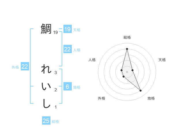 鯛 れいしさんの総格は25画の4点!