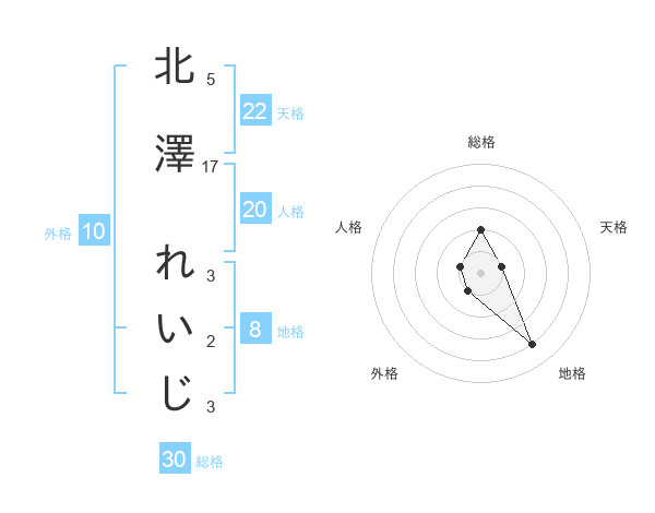 北澤 れいじさんを姓名の画数から五運を鑑定
