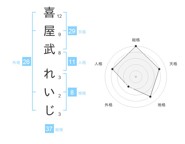 喜屋武 れいじさんを姓名の画数から五運を鑑定