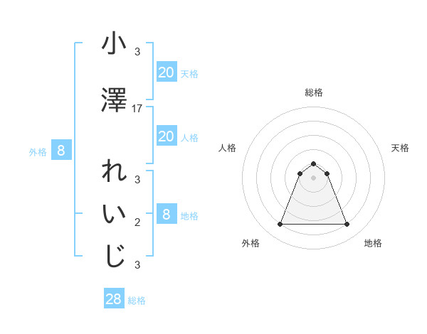 小澤 れいじさんの天格は20画の1点!