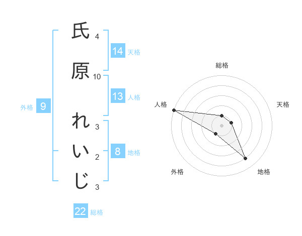 氏原 れいじさんを姓名の画数から五運を鑑定