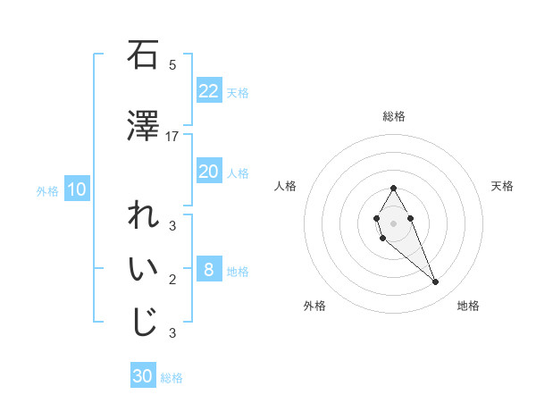 石澤 れいじさんを姓名の画数から五運を鑑定