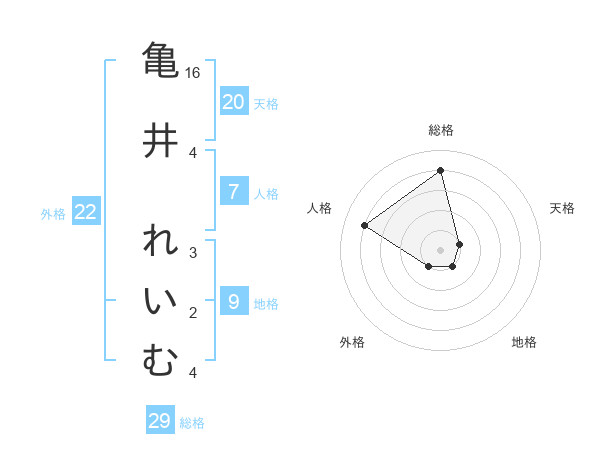 亀井 れいむさんの総格は29画の4点!