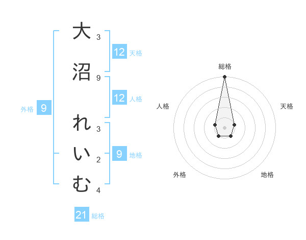 大沼 れいむさんの総格は21画の5点