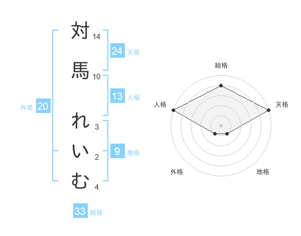 対馬 れいむさんの総格は33画の4点!