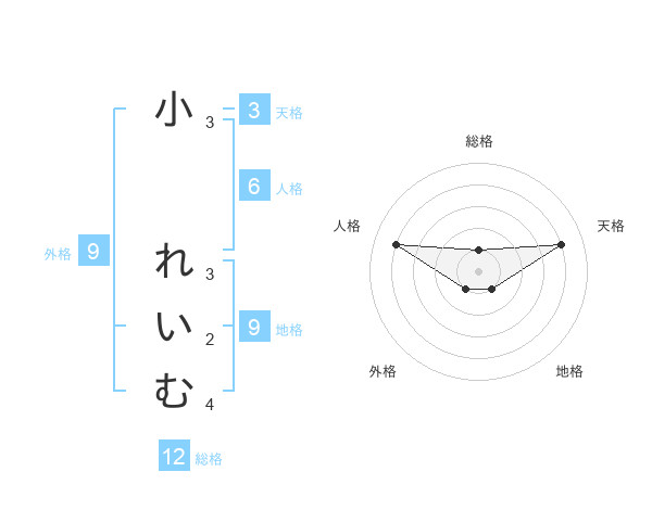 小 れいむさんの総格は12画の1点!