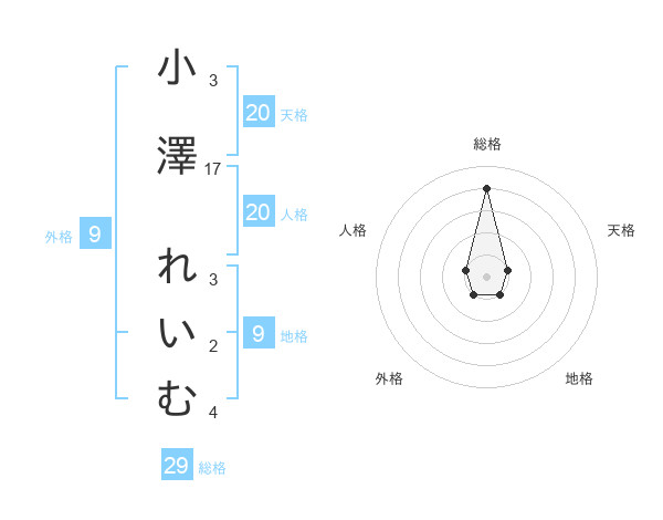 小澤 れいむさんの総格は29画の4点!