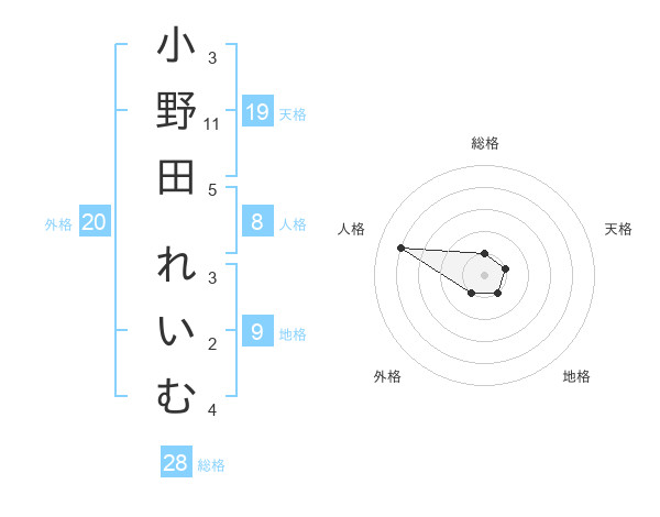小野田 れいむさんの総格は28画の1点!