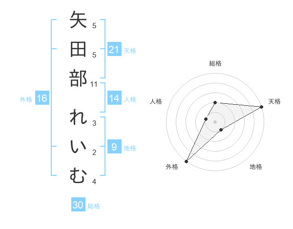 矢田部 れいむさんを姓名の画数から五運を鑑定