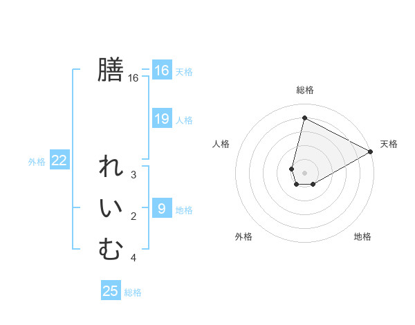 膳 れいむさんの天格は16画の5点!
