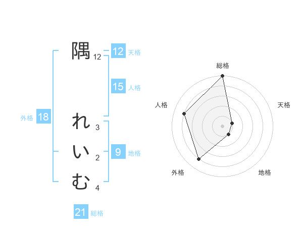 隅 れいむさんの総格は21画の5点!