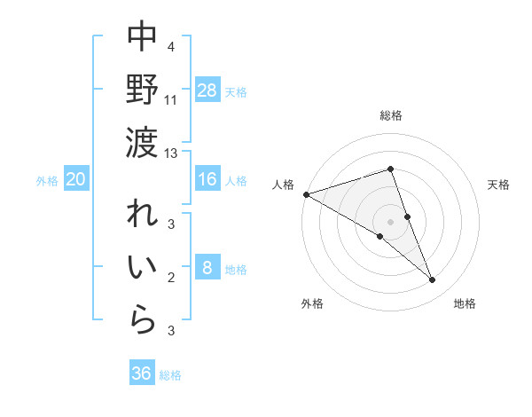 中野渡 れいらさんを姓名の画数から五運を鑑定