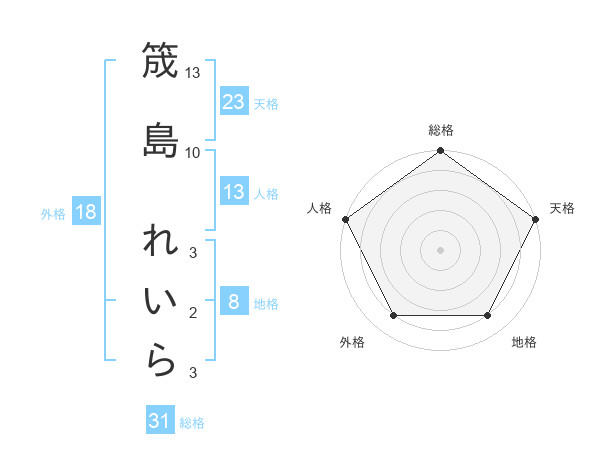 筬島 れいらさんを姓名の画数から五運を鑑定