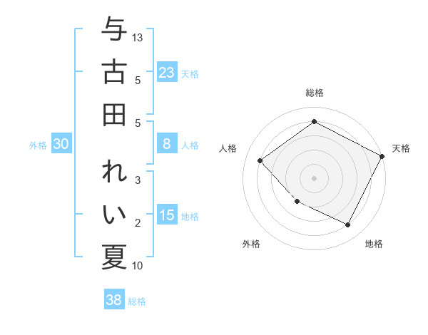 与古田 れい夏さんを姓名の画数から五運を鑑定