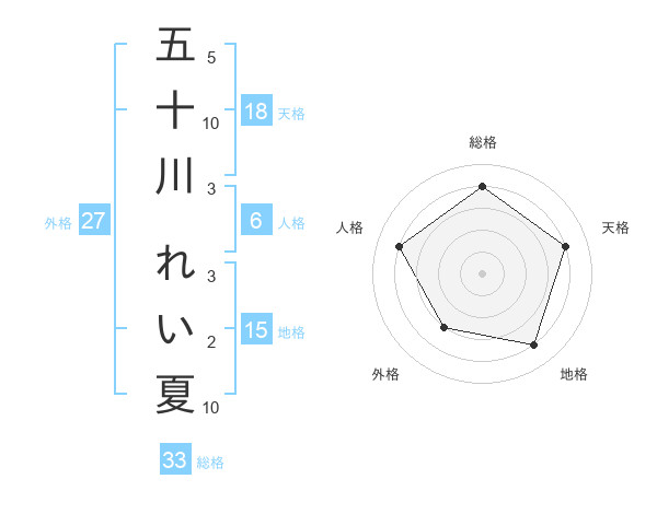 五十川 れい夏さんを姓名の画数から五運を鑑定