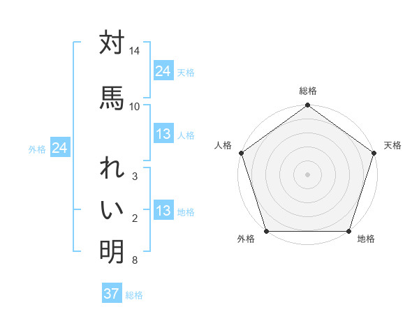 対馬 れい明さんの総格は37画の5点!