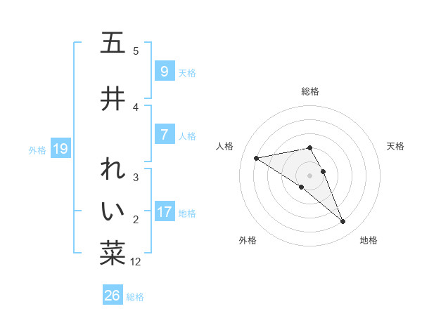 五井 れい菜さんを姓名の画数から五運を鑑定