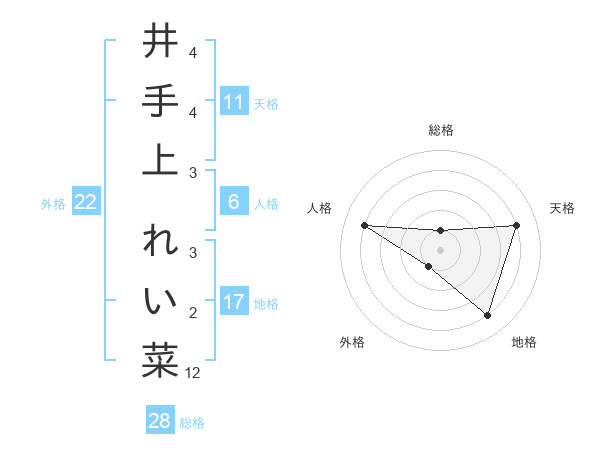 井手上 れい菜さんを姓名の画数から五運を鑑定