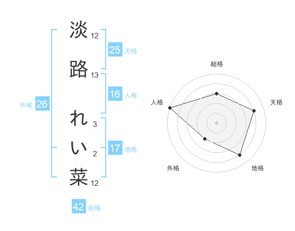 淡路 れい菜さんの天格は25画の4点!