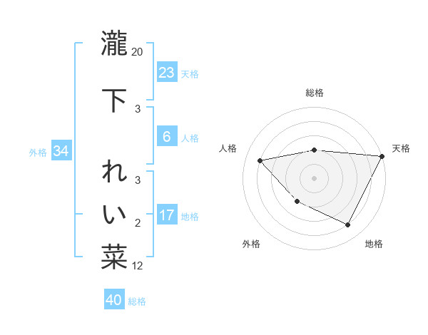 瀧下 れい菜さんの天格は23画の5点!