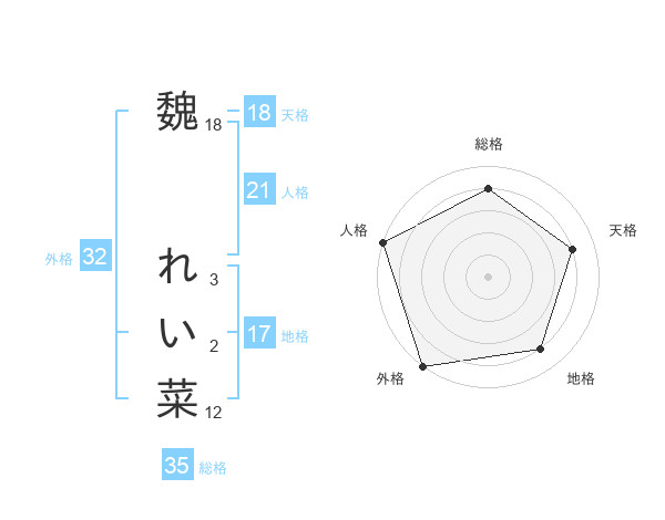魏 れい菜さんを姓名の画数から五運を鑑定