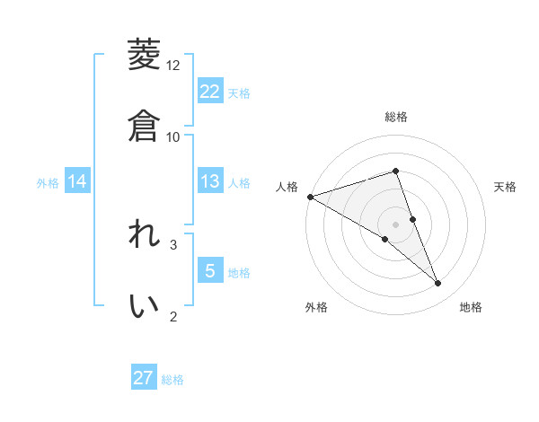 菱倉 れいさんの天格は22画の1点!