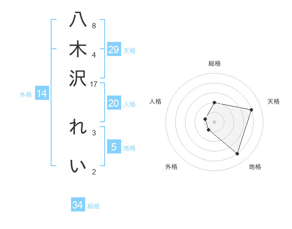 八木沢 れいさんの総格は34画の2点!