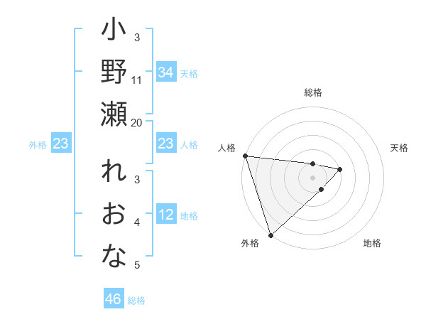 小野瀬 れおなさんの外格は23画の5点!
