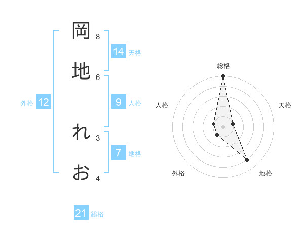 岡地 れおさんの総格は21画の5点!
