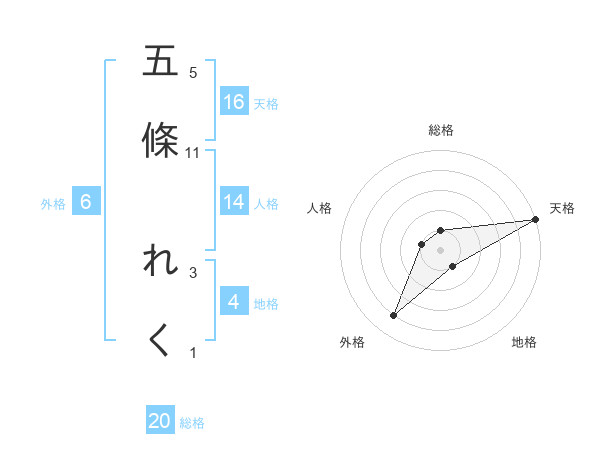 五條 れくさんの天格は16画の5点!