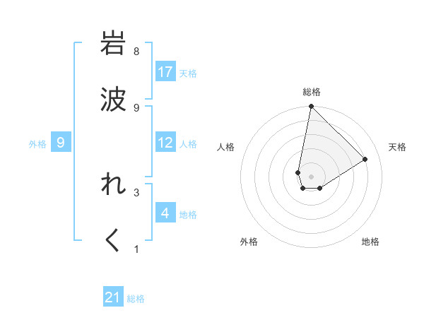 岩波 れくさんの総格は21画の5点!
