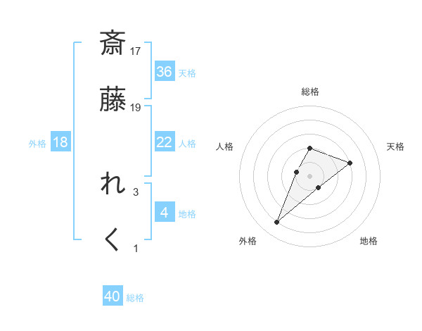 斎藤 れくさんを姓名の画数から五運を鑑定