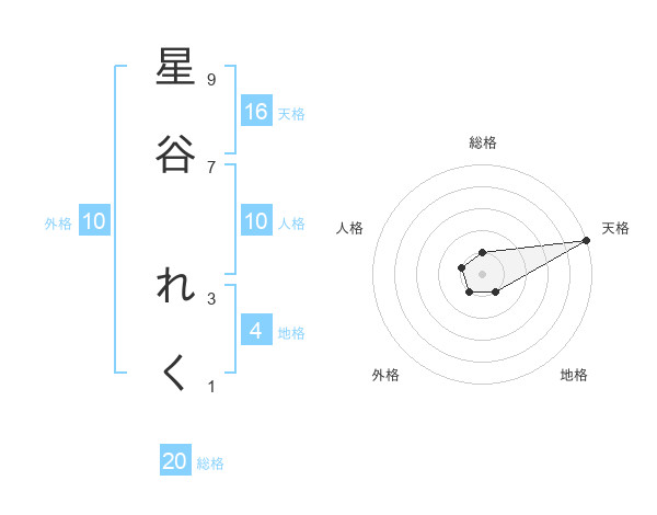 星谷 れくさんの天格は16画の5点!