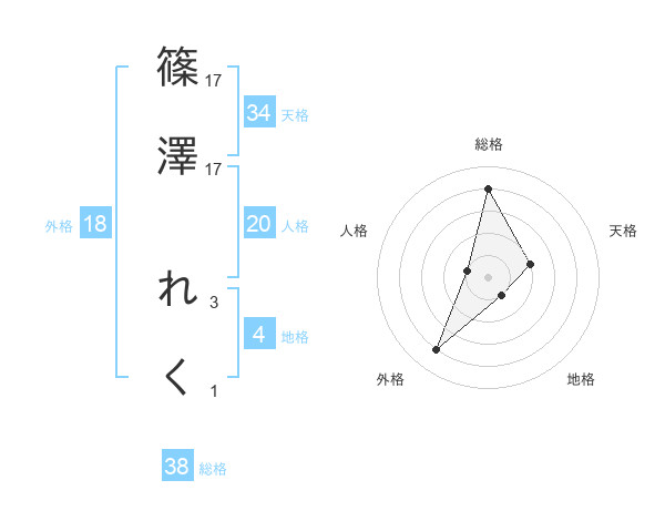 篠澤 れくさんを姓名の画数から五運を鑑定