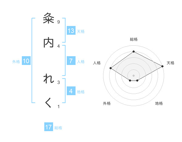 粂内 れくさんの天格は13画の5点!