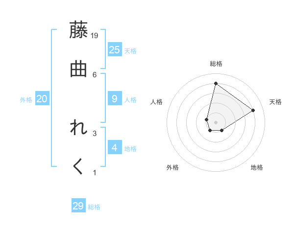 藤曲 れくさんを姓名の画数から五運を鑑定
