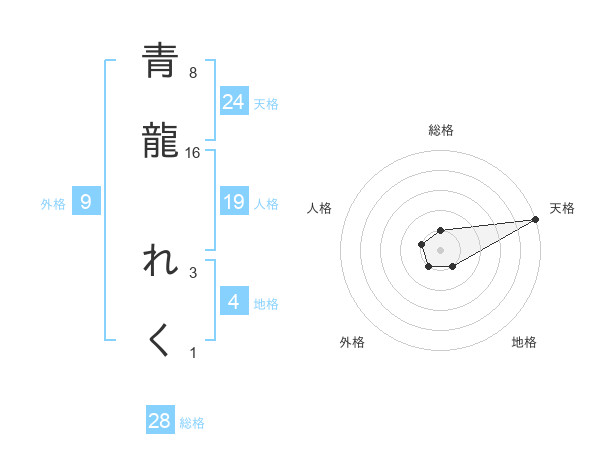 青龍 れくさんの総格は28画の1点!