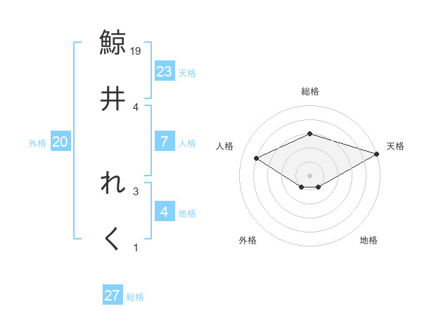 鯨井 れくさんを姓名の画数から五運を鑑定