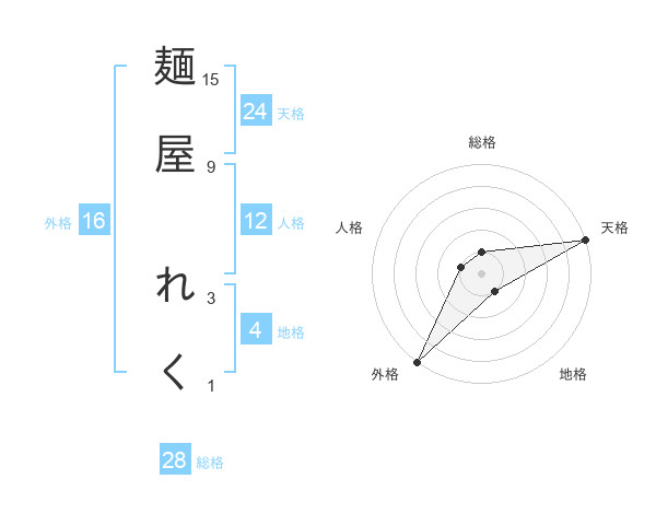 麺屋 れくさんの天格は24画の5点!