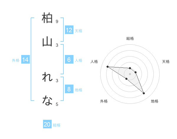 柏山 れなさんの総格は20画の1点!