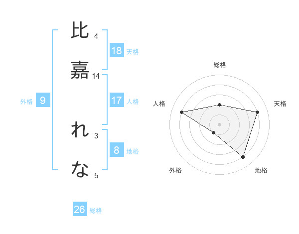 比嘉 れなさんの総格は26画の2点!