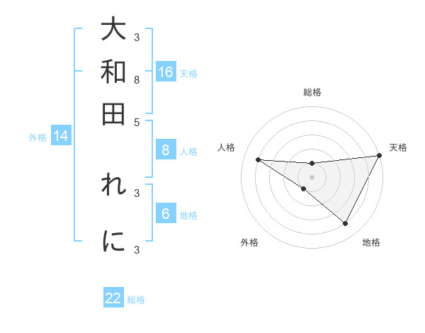 大和田 れにさんの総格は22画の1点!