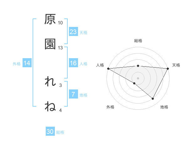 原園 れねさんの総格は30画の2点!