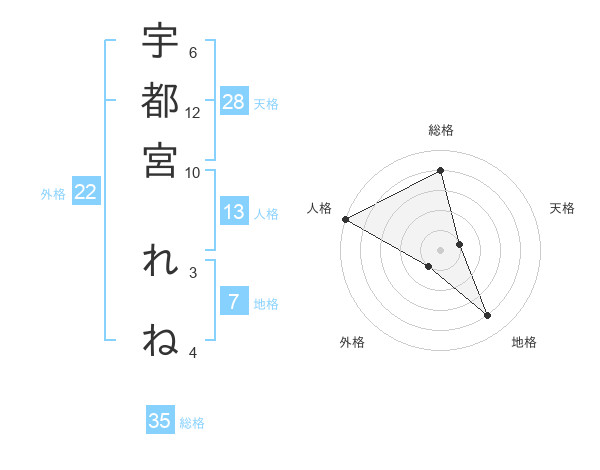 宇都宮 れねさんを姓名の画数から五運を鑑定