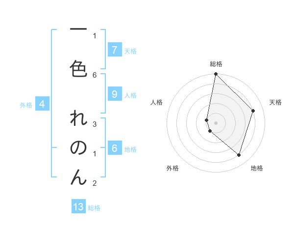 一色 れのんさんの総格は13画の5点!