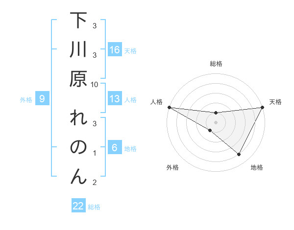 下川原 れのんさんの天格は16画の5点