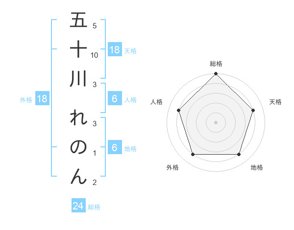 五十川 れのんさんの総格は24画の5点!