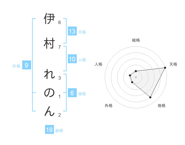 伊村 れのんさんの天格は13画の5点!