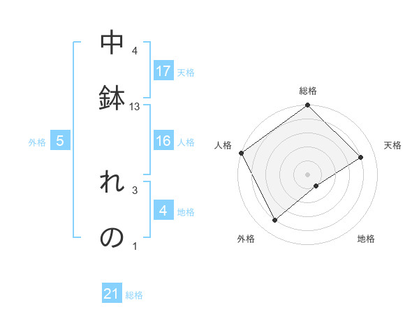 中鉢 れのさんの天格は17画の4点!
