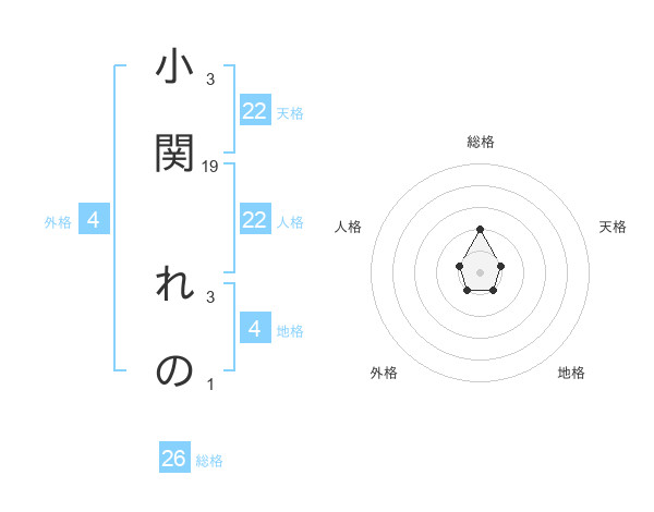 小関 れのさんの天格は22画の1点